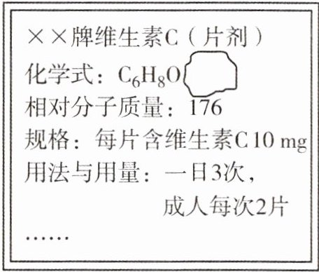 10. 下图是已破损的维生素 C 说明书的部分信息。已知维生素 C 由碳、氢、氧三种元素组成。请回答下列问题。