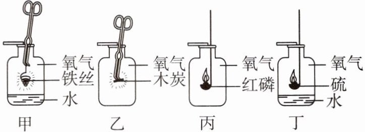 (4)铁丝剧烈燃烧,火星四射,放出大量的热量,生成黑色固体 碳$+$氧气$\xrightarrow{点燃}$二氧化碳 在集气瓶中加入少量的水 二氧化硫