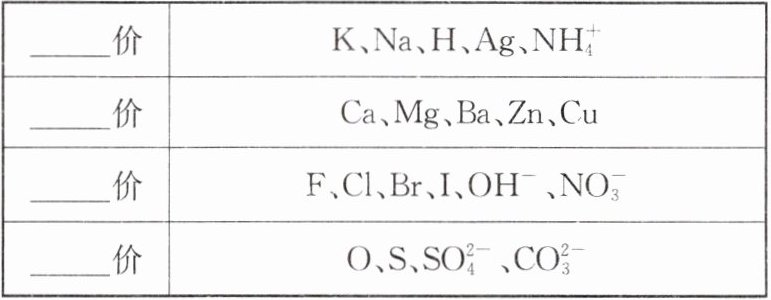 |______价|F、Cl、Br、I、OH-、NO-3|