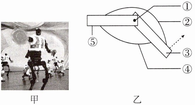 15. 图甲是2025年春晚机器人受程序控制翩翩起舞的画面,图乙是模拟机器人跳舞抬起小腿时的简易模型图。下列相关叙述错误的是( )