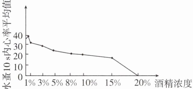 17. 为探究酗酒对人体健康的影响,小秦测试了不同浓度的酒精对水蚤心率的影响,实验结果如下图所示。下列关于该实验的说法,正确的是 ( )