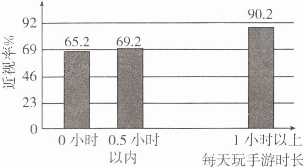 (2)请根据表中数据,完善每天玩手机时长和近视率之间关系的柱状图。
