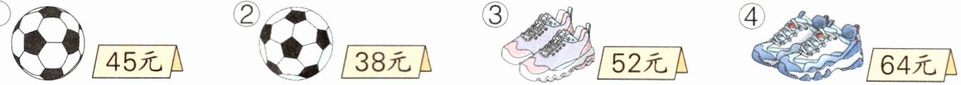 45>38 52<64 所以应该买②号足球和③号鞋子。120-38-52=30(元) 【解析】要想剩下的钱最多,就要使花的钱最少。先分别比较足球和鞋子的价格,选便宜的足球和鞋子来买,再用120元依次减去选择的足球和鞋子的价钱即可。
