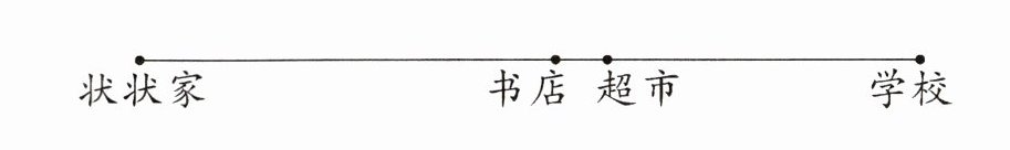 4. 如图,状状家到学校有 7500 米,到书店有 4 千米,超市到学校有 3000 米。书店到超市有多少米?
