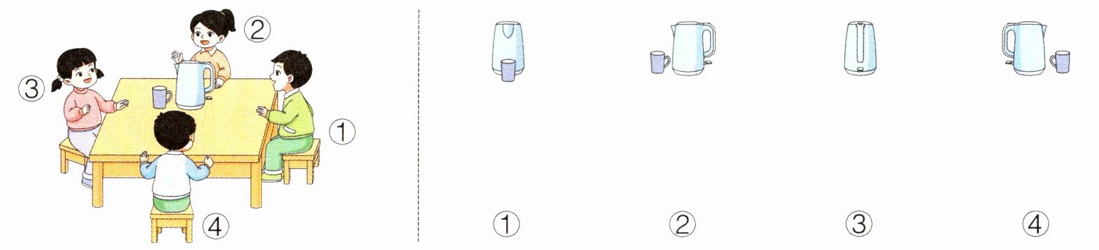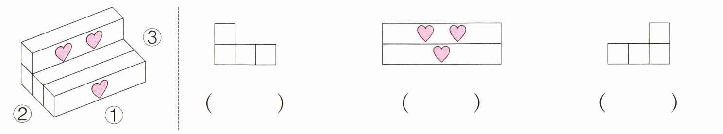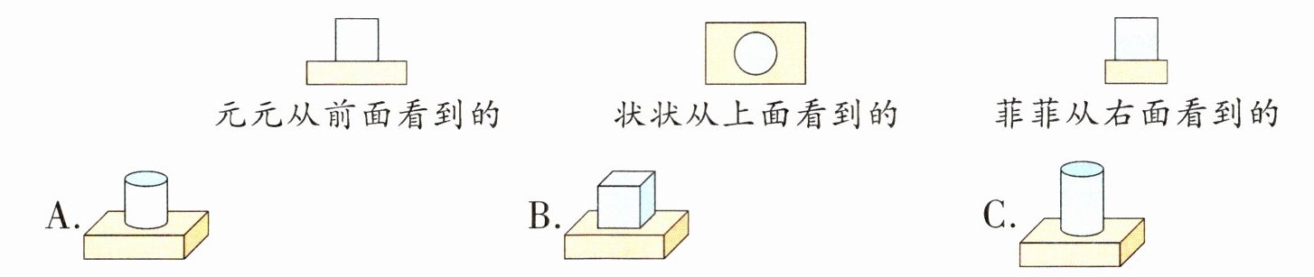 3. 下面右边的图分别是从哪个位置看到的?(填序号)
