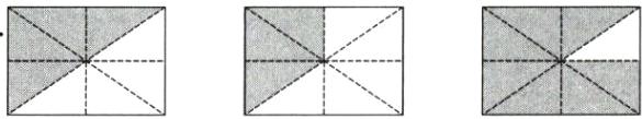 3. 下面是三个完全相同的长方形,分别涂色表示出$\frac{4}{8}$、$\frac{3}{8}$、$\frac{7}{8}$,并比较大小。