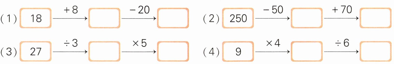 $156 - 42 + 15$ $56 + 12 - 34$ $4×6÷3$ $54÷6×3$