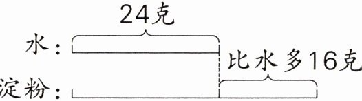 【解析】由线段图可知,1杯水24克,5勺淀粉的质量比1杯水多16克,所以先用加法求出5勺淀粉的质量,再除以5就可以求出1勺淀粉的质量。