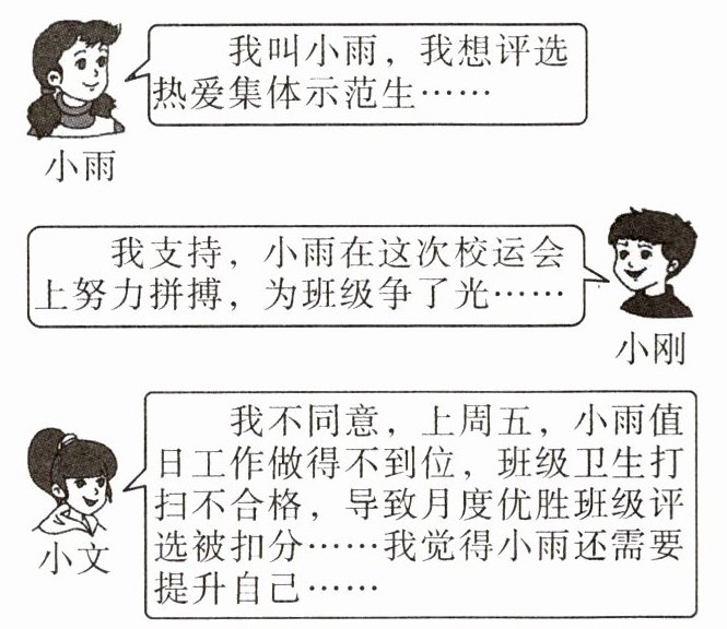 某班学生小雨参加学校开展的“示范生”评选活动。按照活动流程,现正在进行班级推选环节……