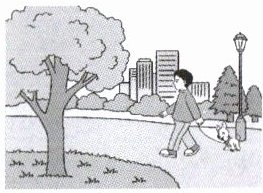 Ⅵ. Look and write. (看图,根据首字母提示写单词补全句子。)