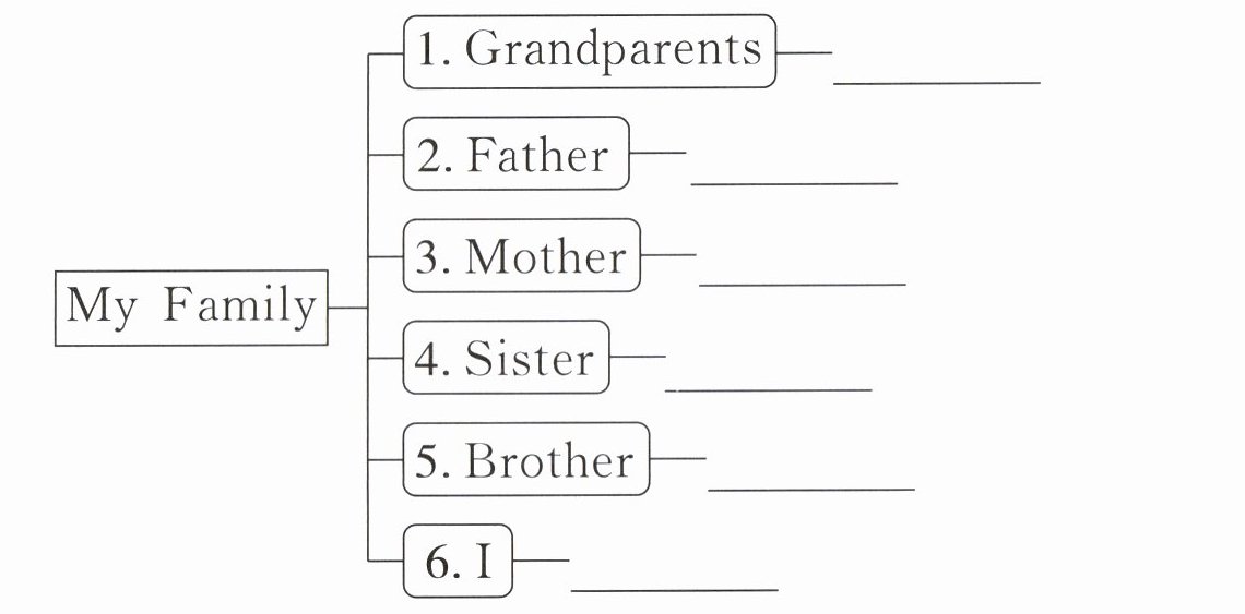 Ⅳ. Listen and choose. (听录音,给每位家庭成员选择他们最喜欢的地点,补全思维导图。)