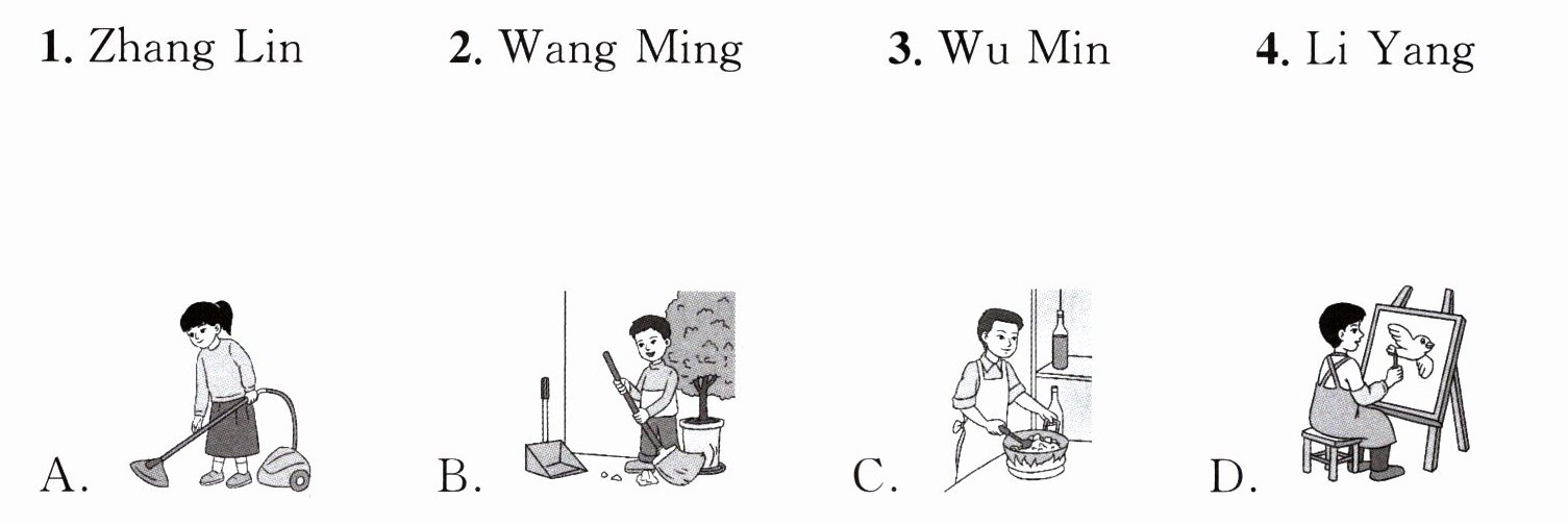 Ⅰ. Listen and match. (听录音,将人物与对应的图片连线。)