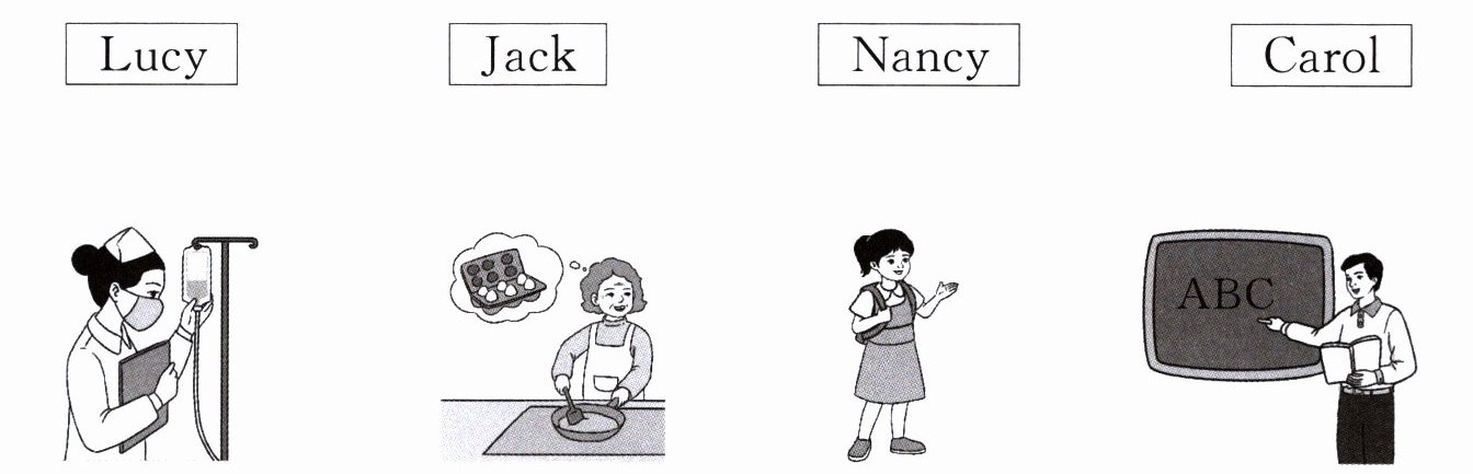 Hello,my name is Lucy. I am a girl. I have a happy family. My father is Jack. He is a teacher. He teaches English at school. My mother is Nancy. She is a nurse. She can help doctors in the hospital. My grandma is Carol. She can make good lunches. And we often cook together.