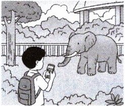 One sunny day, Philip goes to the zoo. He’s happy to see the animals. He sees a big elephant. Philip is amazed(惊奇的). He quickly takes out his phone and takes photos of it.