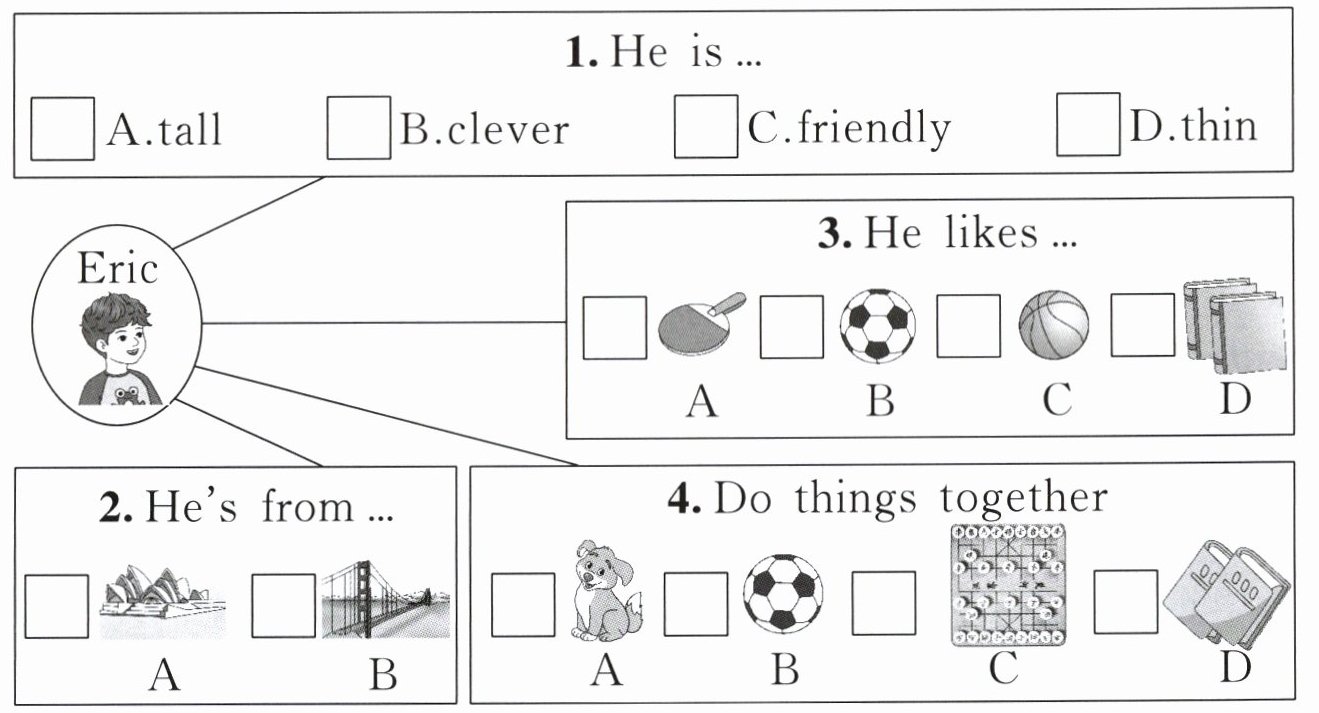 Ⅳ. Listen and tick. (听录音,根据所听内容选择正确的答案,在方框内画“√”。)