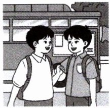 3. Binbin and John are talking happily(高兴地) (in the park/ at the bus stop).
