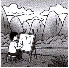 C. I'm drawing a picture of the water and the hill.