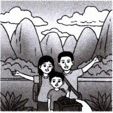 B. My parents and I are taking pictures.