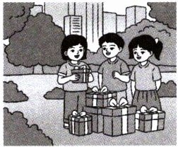 Ⅳ. Read, choose and write. (选择合适的单词并用其适当形式填空,补全对图片的描述。)