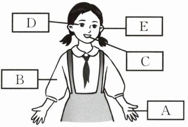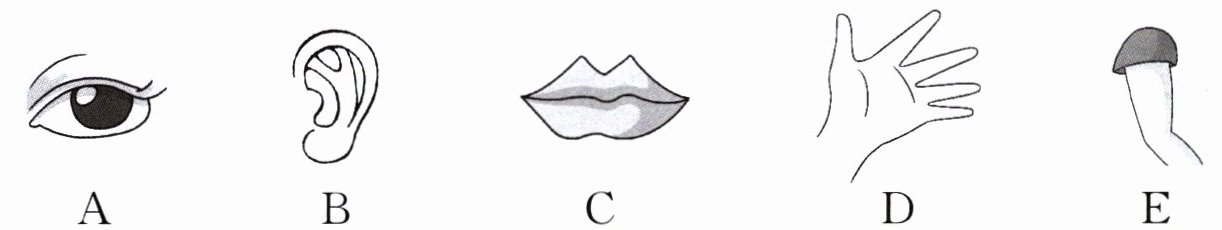 | A. hand | B. arm | C. mouth | D. eye | E. ear |