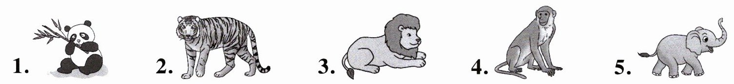 |A. lion|B. tiger|C. monkey|D. elephant|E. panda|