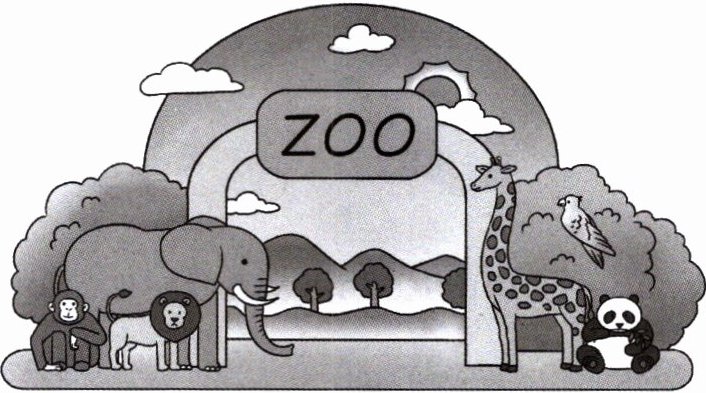 圈出 bird、elephant、giraffe、lion、monkey、panda