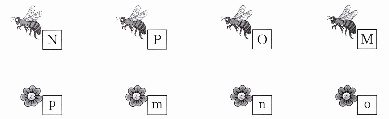 Ⅲ. Look and match. (蜜蜂会采哪一朵花? 将相应的大小写字母连线。)