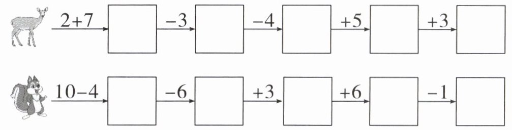 $8-3= □$ $4+6= □$ $2+4+2= □$ $10-8+3= □$