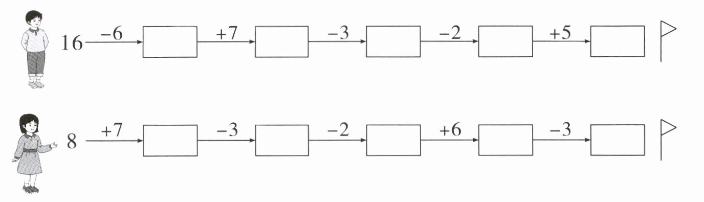 3. 在□里填上合适的数,在〇里填上“+”或“-”。