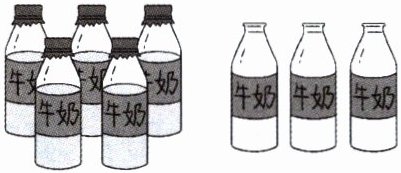 一共有 8 瓶牛奶,喝了( )瓶,还剩下( )瓶。