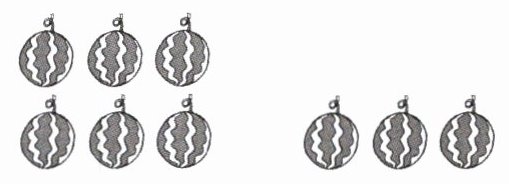 左边有( )个西瓜,右边有( )个西瓜,一共有( )个西瓜。