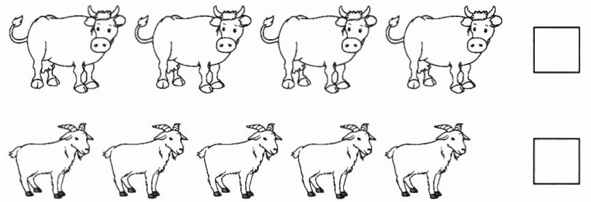 四、数一数,比一比,在少的后面的$□$里画“√”。