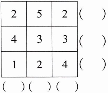 五、算一算,每行、每列上三个数相加的得数是多少,并填在对应的$(\quad)$里。