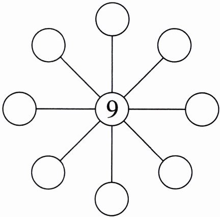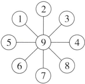 四、将$1\sim8分别填入◯$里,使每条线上的三个数的和都是$18$。