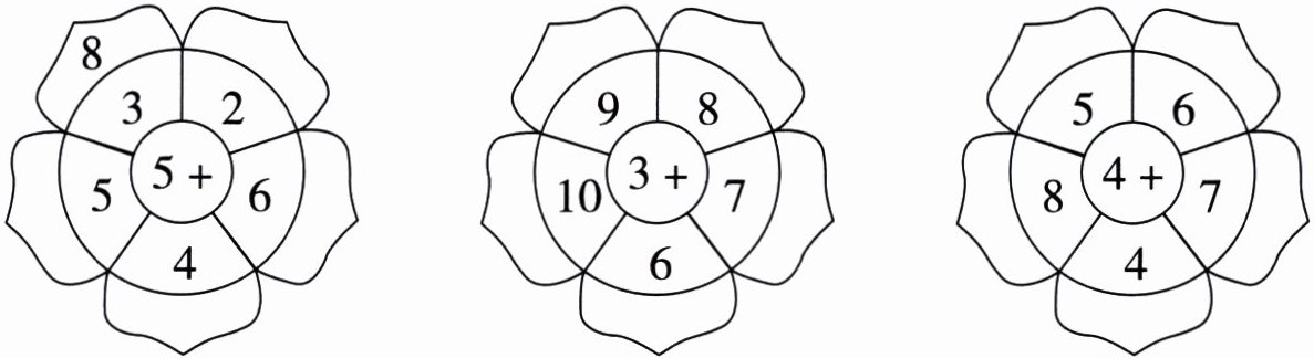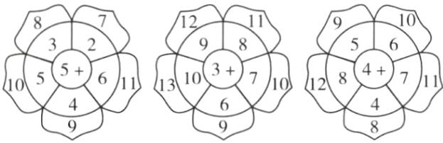 $8+□= 15$ $5+□= 13$ $4+□= 12$