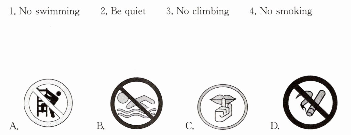 1. No swimming 2. Be quiet 3. No climbing 4. No smoking