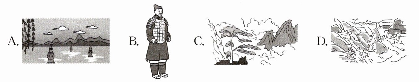 任务一:给上面四段文字匹配正确的图片,将序号填写在文段中的横线上。