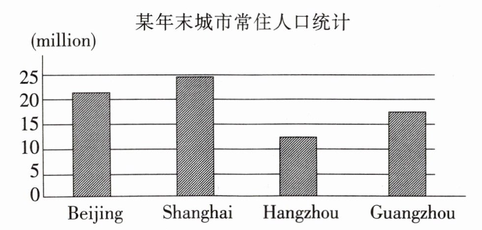 )3. Which city has got the most people in the four cities?A. Beijing.