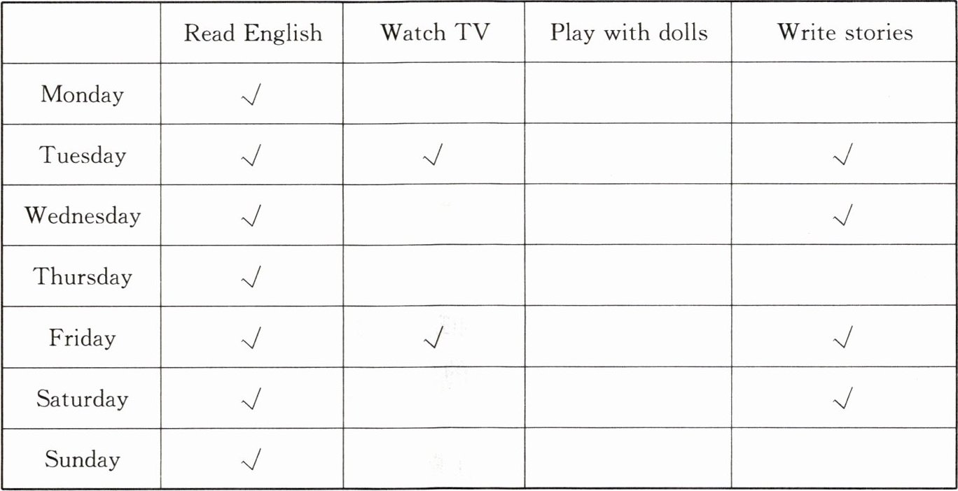 五、Read, choose and fill. 根据表格,选择单词补全短文。