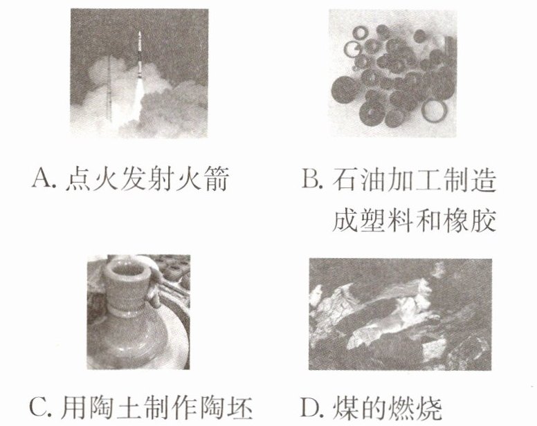 7. 《茶经》中记载:“晴,采之,蒸之,捣之,拍之,焙之,穿之,封之,茶之干矣。”以下涉及化学变化的是 ( )