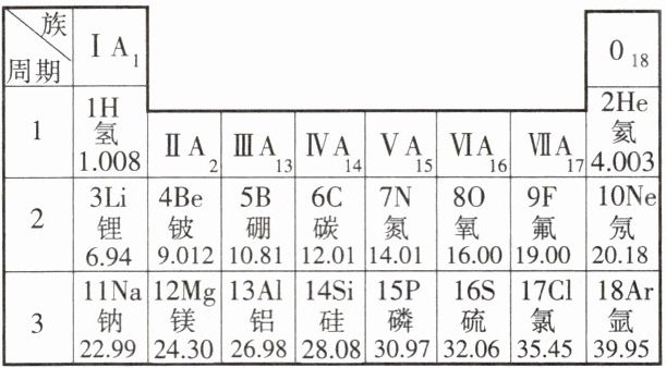 13. 元素周期表是学习化学的重要工具,下图为元素周期表中部分元素的相关信息,请回答相关问题: