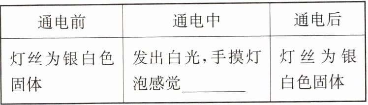 |灯丝为银白色固体|发出白光,手摸灯泡感觉______|灯丝为银白色固体|
