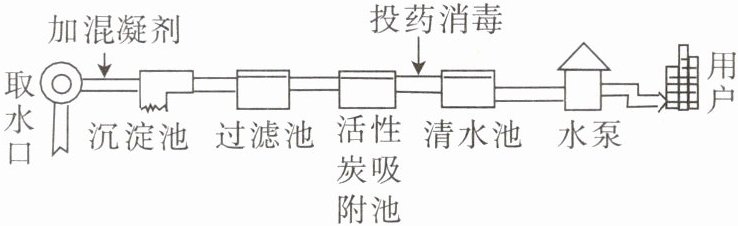 10. 自来水厂净水过程可用下图表示,其中分离水中固态杂质的设备是( )