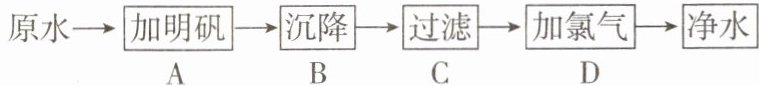 15. 原水(未经处理的水)中含有泥沙悬浮物和细菌等杂质,可用次氯酸杀死细菌。氯气溶解于水时,可生成盐酸和次氯酸。某水厂生产自来水的步骤如下: