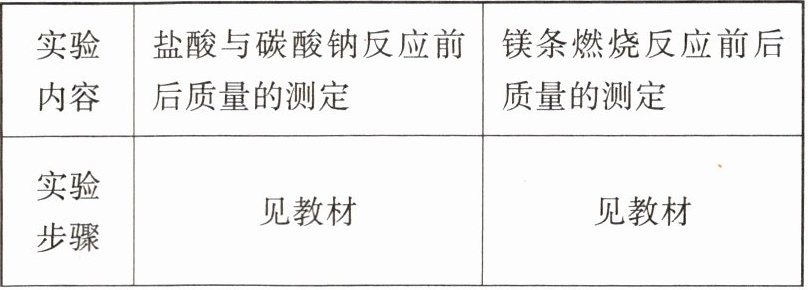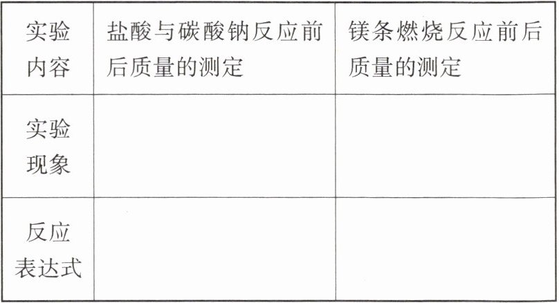 |实验内容|盐酸与碳酸钠反应前后质量的测定|镁条燃烧反应前后质量的测定|