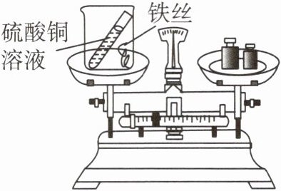 (1)在小烧杯中加入铁丝,小试管中加入硫酸铜溶液,称量总质量为$m_{1}$,将小烧杯倾斜使小试管中的硫酸铜溶液进入烧杯中反应,发生反应的实验现象为______,反应发生了一段时间后,再称量小烧杯及烧杯内物质的总质量为$m_{2}$,则$m_{1}$______(填“$=$”“$\gt$”或“$\lt$”)$m_{2}$。