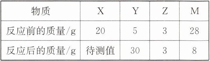 19. 在一个密闭容器中放入$X$、$Y$、$Z$、$M$四种物质,使之在一定条件下发生化学反应。一段时间后,测得有关数据如下表: