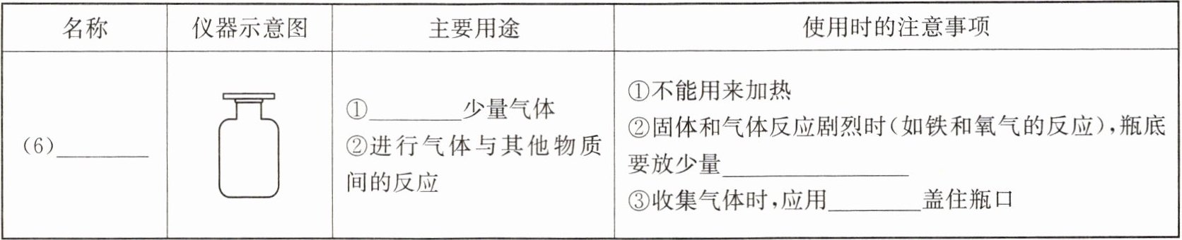 (6)集气瓶 收集或储存 水或细沙 玻璃片