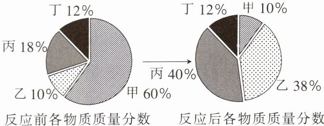 9. 一定条件下,甲、乙、丙、丁四种物质在密闭容器中反应一段时间后,测得反应前后各物质的质量分数如图所示。下列说法不正确的是( )