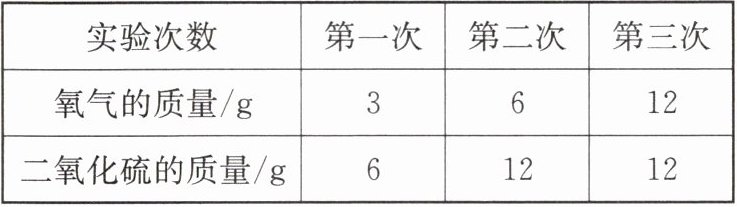 (1) 参加反应的硫、氧气和生成的二氧化硫之间的质量比为______;第______次实验中硫剩余______ $g$。